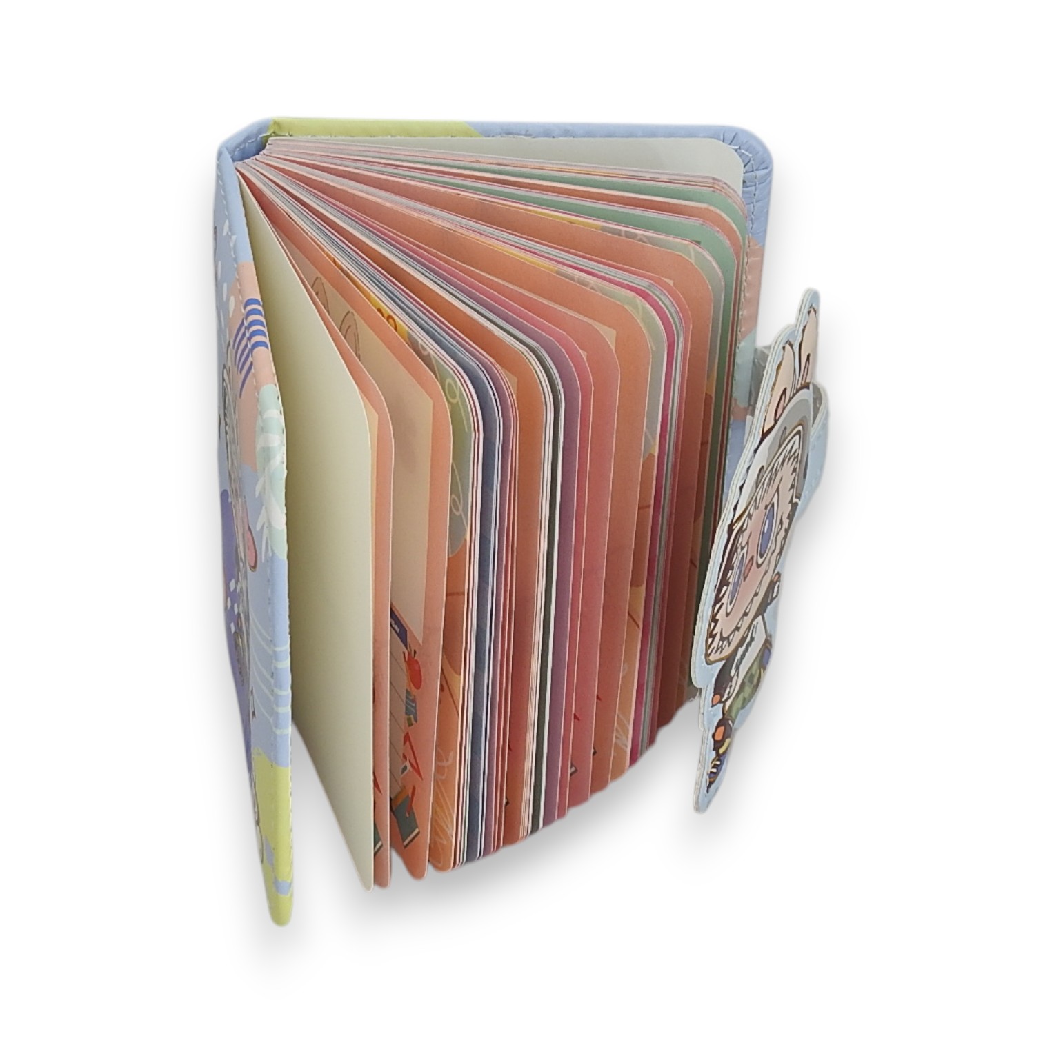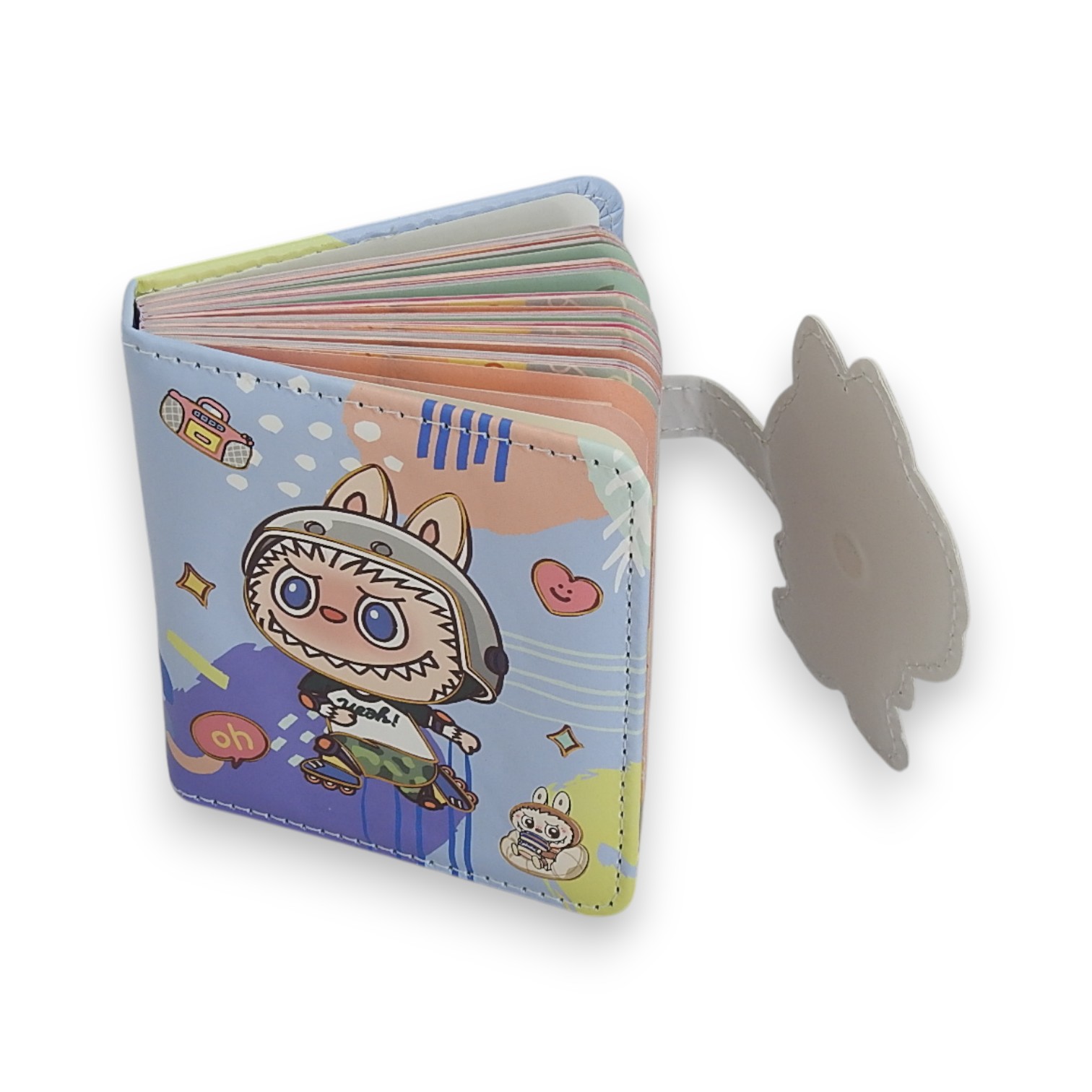 Divertida y práctica agendita de 9 x 10 cm, ideal para llevar a todos lados. Su diseño temático de Labubu incluye tapa acolchonada con solapa imantada, lo que la hace cómoda y segura de cerrar. Contiene hojas decoradas relacionadas con el personaje, perfectas para usar como agenda, lista de actividades o notas rápidas.