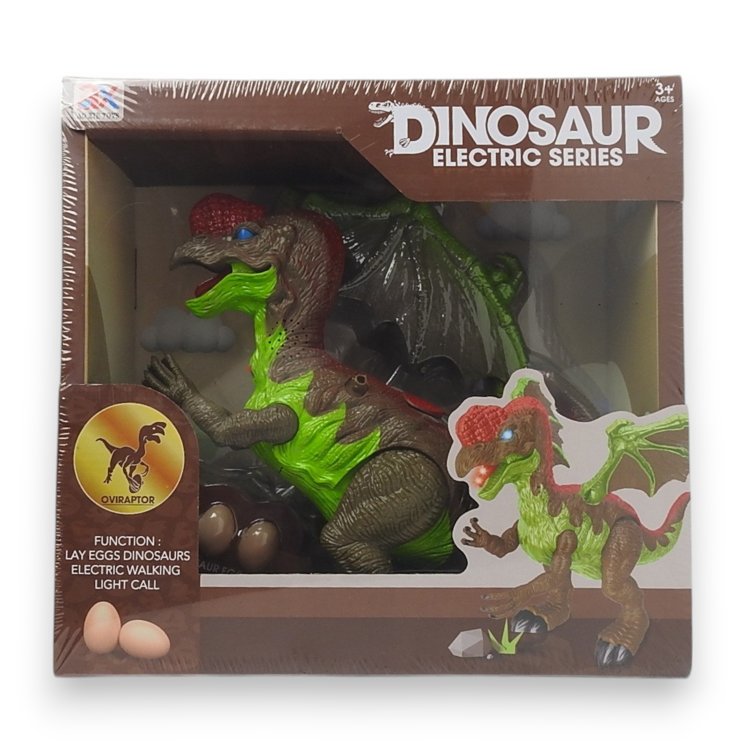 ¡Diversión prehistórica asegurada! Este realista Oviraptor camina, emite luces y sonidos, y ¡pone huevos de plástico que los niños pueden insertar y sacar! Con diseño detallado y colorido, fomenta la imaginación y el juego creativo. Fabricado con materiales seguros y duraderos, recomendado para niños mayores de 3 años.