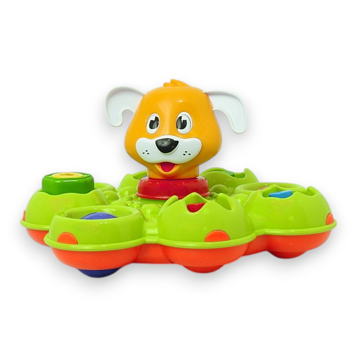 ¡Aprender y jugar nunca fue tan divertido! Este simpático animalito incluye 4 bloques numerados del 1 al 4 que encajan en su base y saltan al presionar su cabeza. Además, al tocar la estrellita frontal se activa una melodía, y sus ruedas esféricas permiten empujarlo hacia adelante y atrás, fomentando la coordinación y la imaginación de los más pequeños.